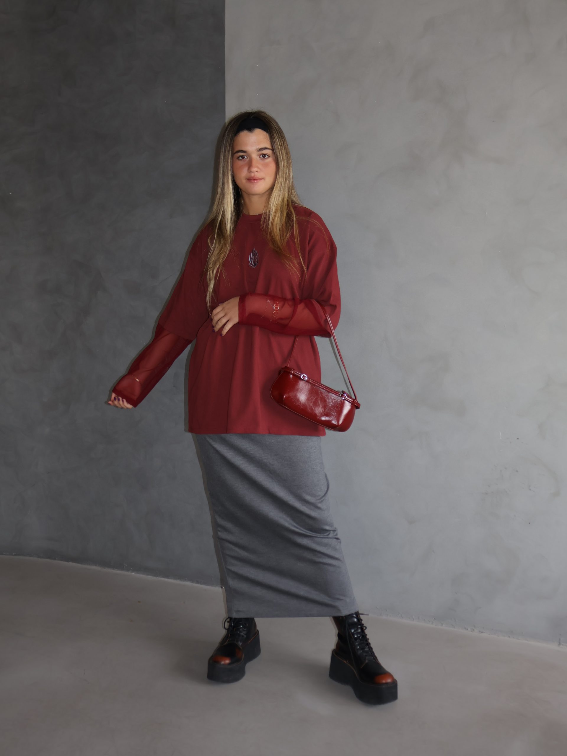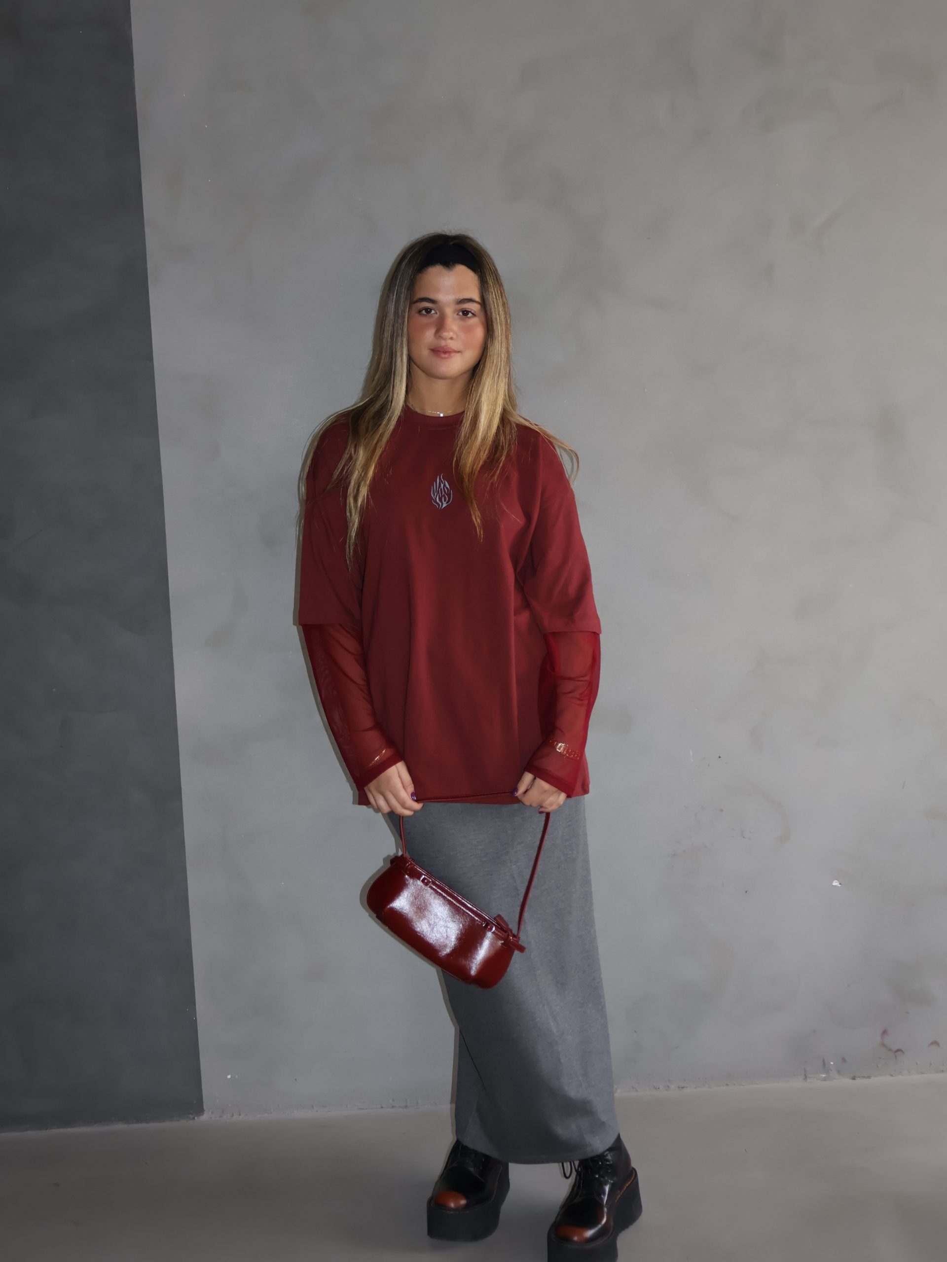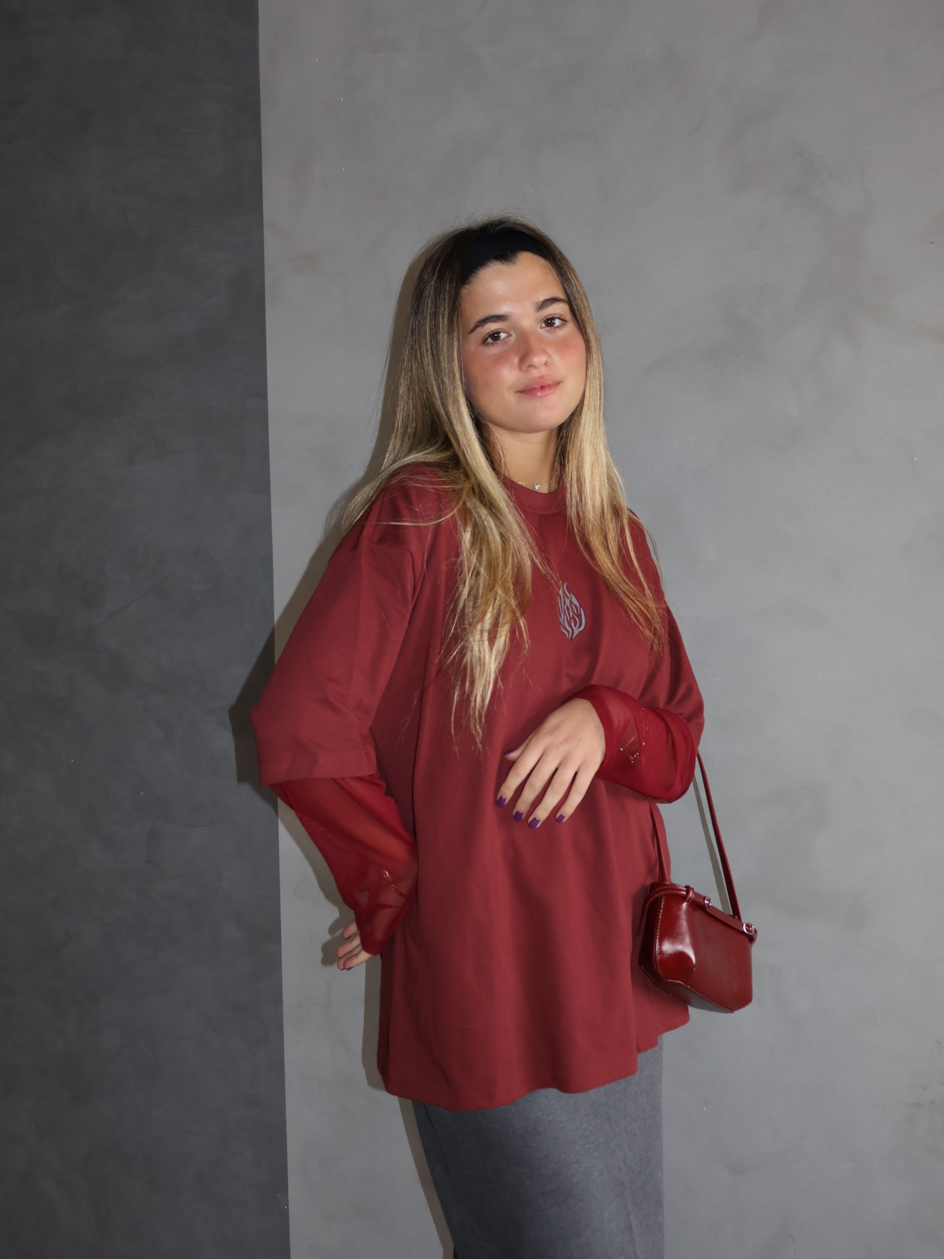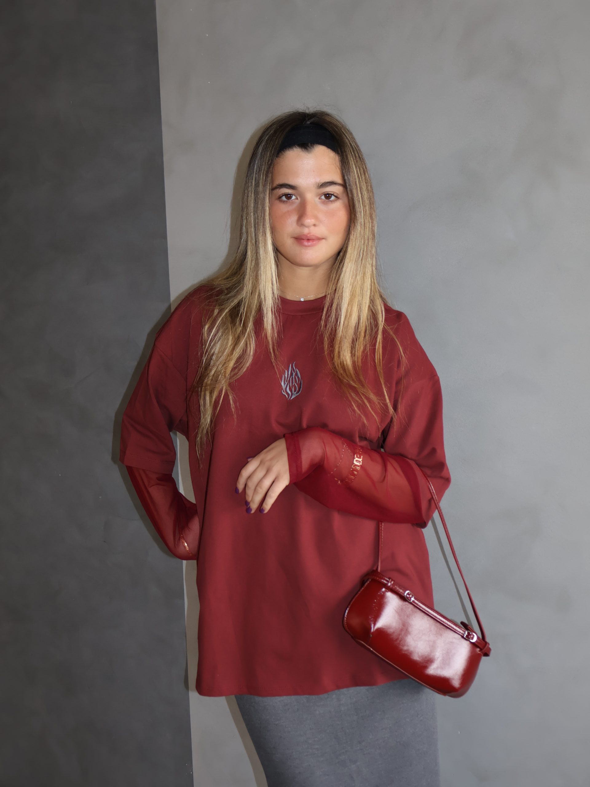 חולצת האש שלי בורדו שרוול רשת